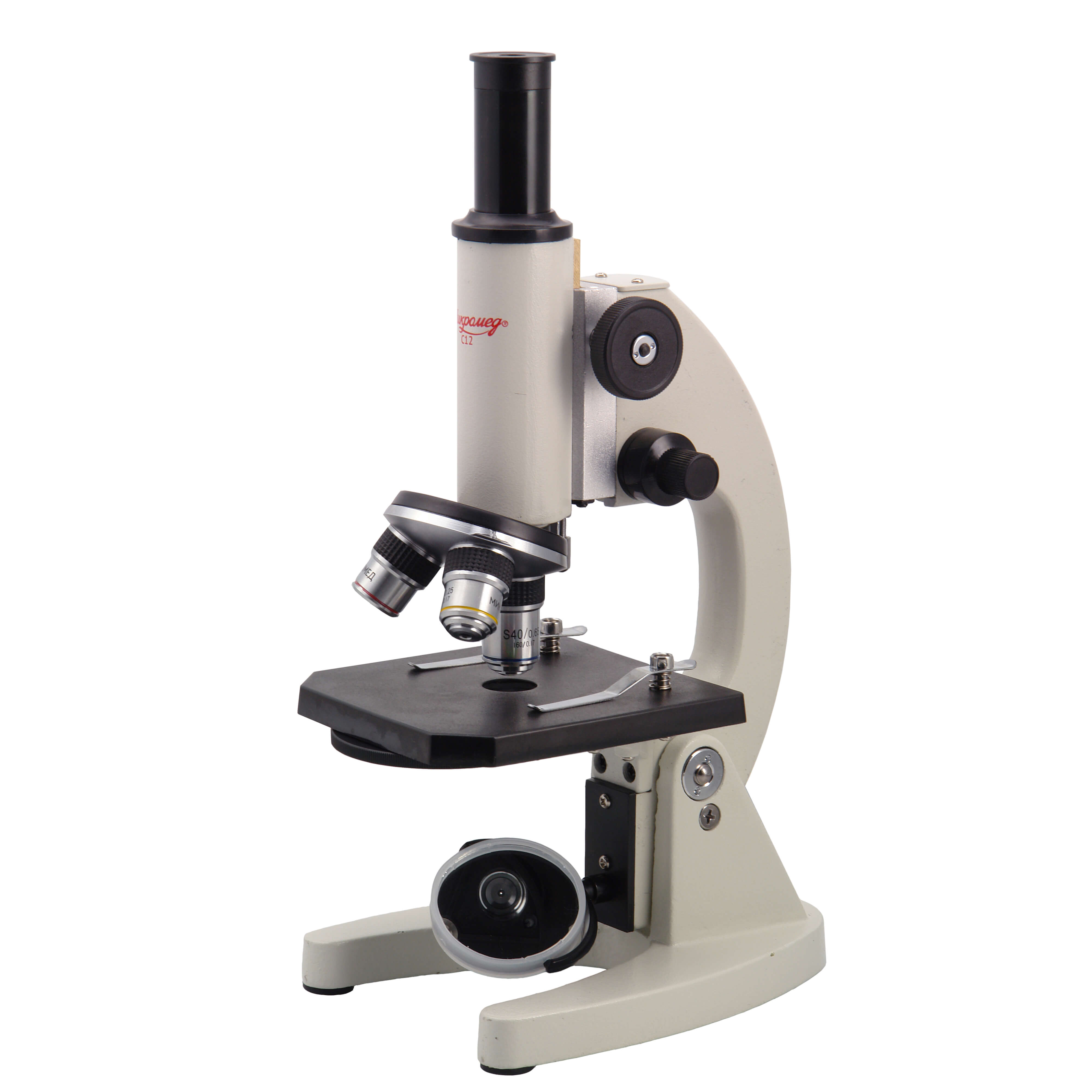 Микроскоп оснащен объективами с линзами из оптического стекла – 4x/0.1, 10x/0.25 и 40x/0.65. Благодаря ахроматической коррекции объективов наблюдатель видит в окуляр отчетливое и яркое изображение, а при использовании окулярной камеры может записать изображения и видео отличного качества. Объектив 40x/0.65 имеет оправу с подпружиненным оптическим блоком, что препятствует повреждению оптики объектива и изучаемого образца. Объективы имеют высоту 33 мм в соответствии со стандартом RMS, что позволяет приобретать дополнительные объективы и расширять диапазон увеличений. Например, с объективом 100х/1.25 Oilмаксимальное увеличение микроскопа составит от 1000х до 1600х.