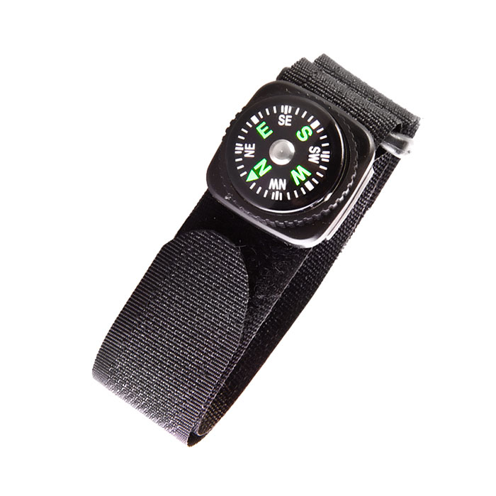 Туристический компас с ремешком для запястья на липучке. Капсула заполнена демпфирующей жидкостью, которая гасит колебания магнитной стрелки и стабилизирует ее положение. Магнитная стрелка и лимб с делениями представляют собой единую деталь, чем облегчается работа. На лимбе отмечены индексы направлений N, NE, E, SE, S, SW, W, NW. Цена деления шкалы азимута
