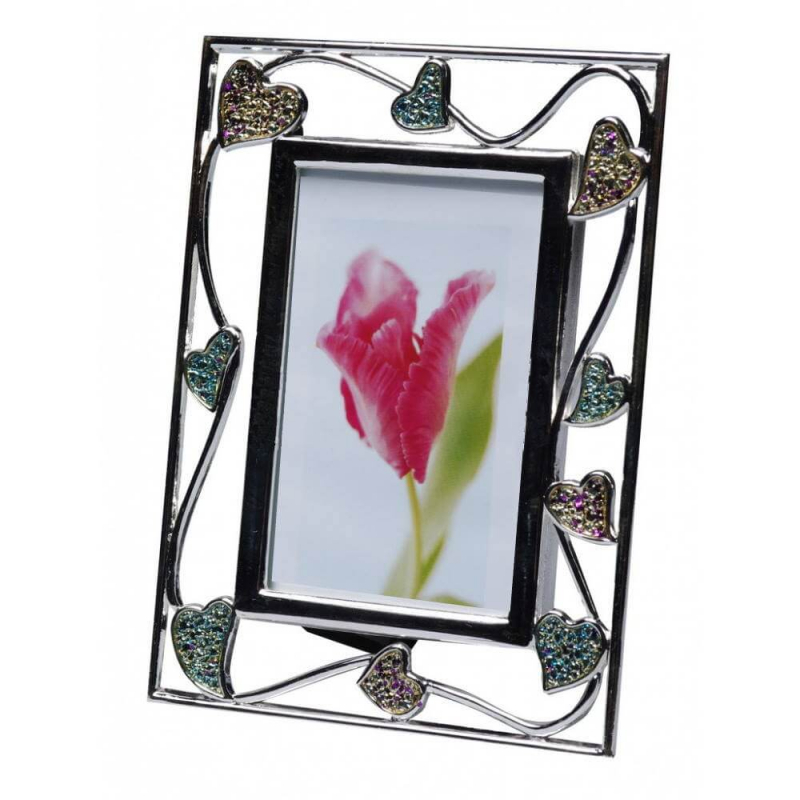 Металлическая рамка с цветными вставками для фото размером 5х8 см. Цвет рамки: серебристый, цвет вставок: желтый, зеленый Размер фотографии