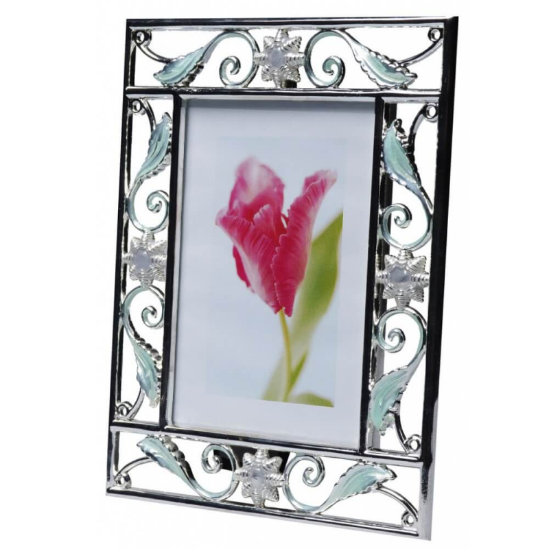 Металлическая рамка с цветной эмалью для фото размером 9х13 см. Цвет серебристый, бирюзовый Размер фотографии