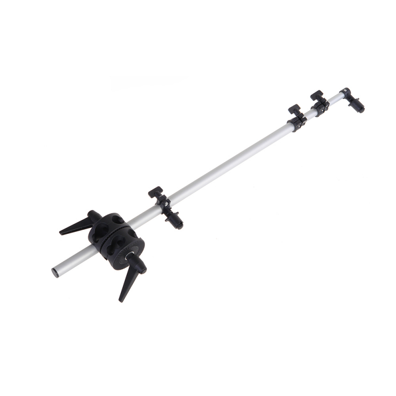 Длина телескопической штанги от 78 до 178 см, 3 секции, на штанге размещены два зажима для отражателя, максимальная длина между захватами 166 см. Держатель можно расположить под любым углом относительно стойки.