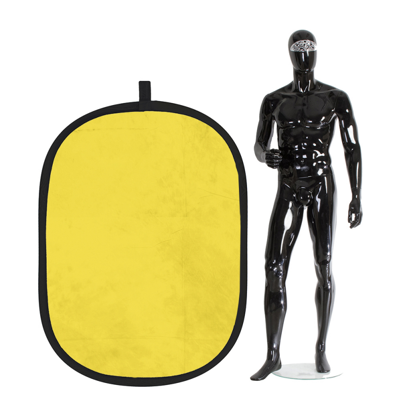 Фон имеет гибкий стальной ободок для растяжки. К фону прилагается специальный чехол, куда его складывают в свернутом состоянии.