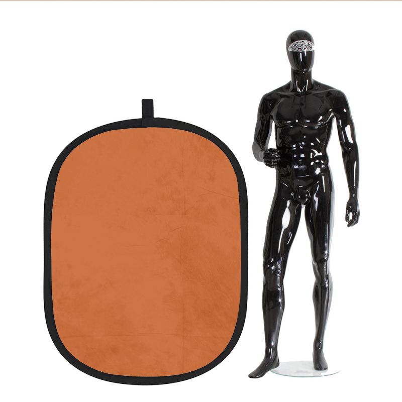 Фон имеет гибкий стальной ободок для растяжки. К фону прилагается специальный чехол, куда его складывают в свернутом состоянии.