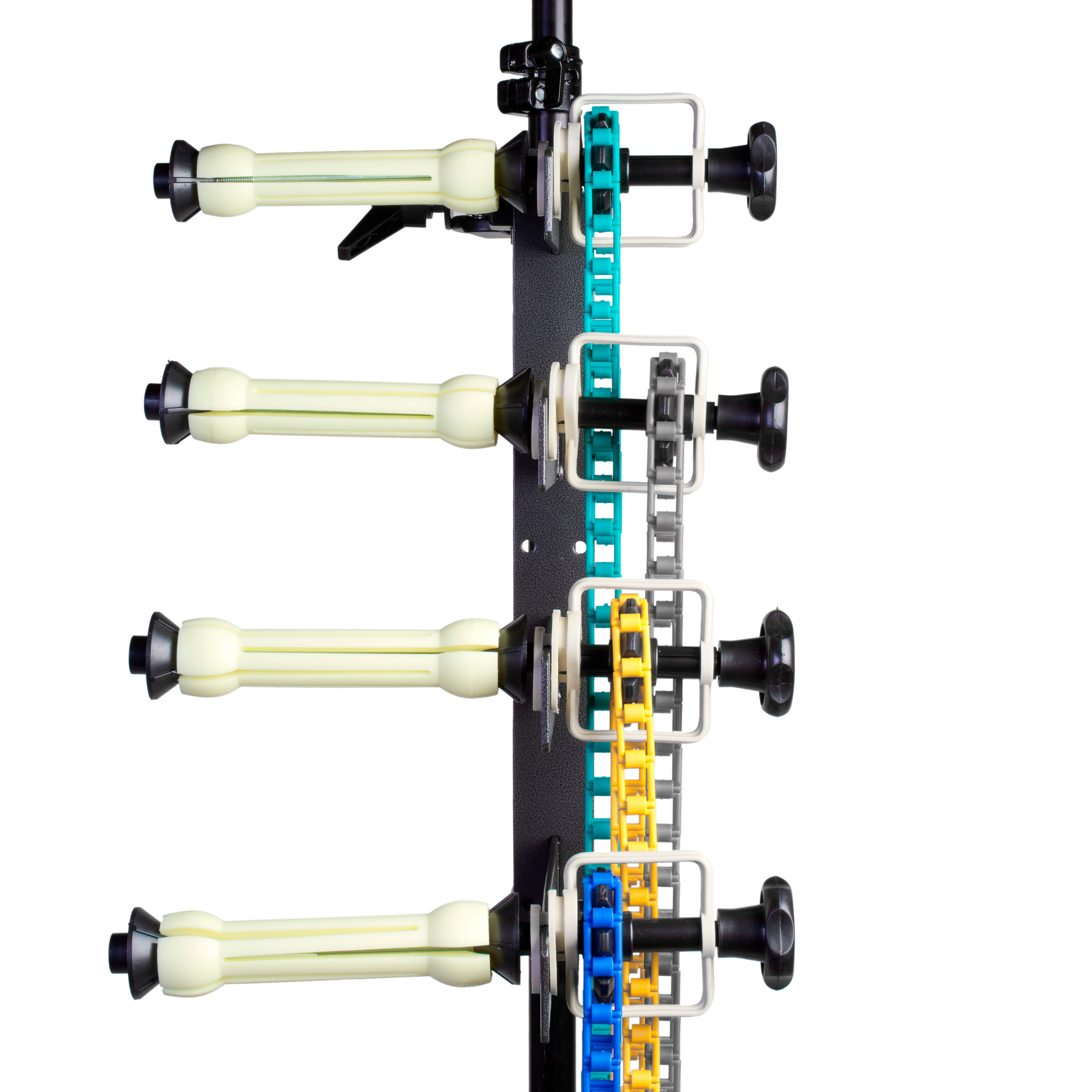Система подъема фона Falcon Eyes B-4Wпредназначена для использования с бумажными фонами и помогает организовать пространство фотостудии для быстрой и легкой смены рабочего фона. Фон устанавливается на кронштейн при помощи пары цанговых зажимов оснащенных ручным приводом для разворачивания/сворачивания фона. Движение каждого фона осуществляется роликами с цепями.