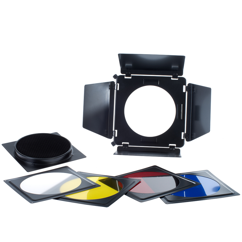 Шторки ограничивают световой поток и позволяют настроить освещение в соответствии с требованиями фотографа. Изготовлены из металла, крепление шторок производится с помощью двух винтов по углам. Посадочный диаметр 160–180 мм. Посадочный диаметр