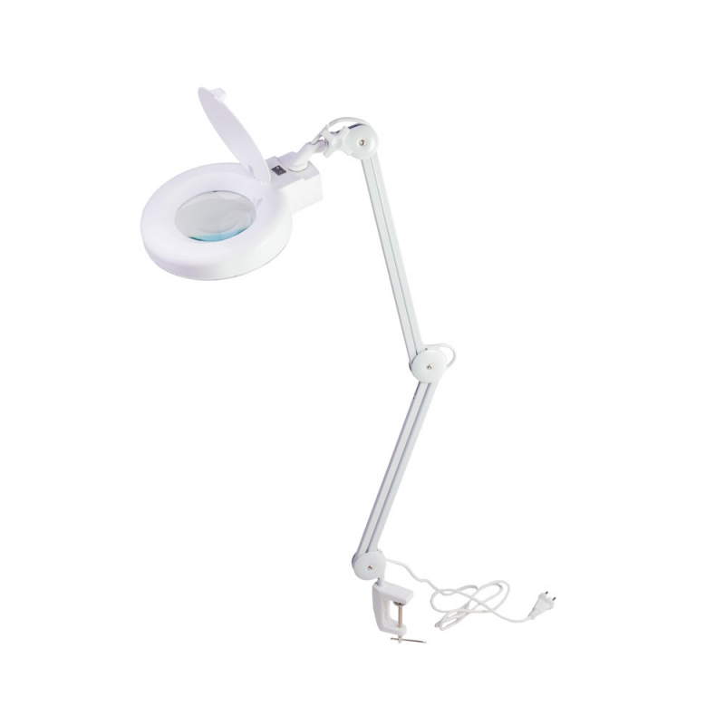 Настольная лампа-лупа 8608D 3D (220B)на металлической струбцине с люминисцентной подсветкой выполняет сразу две функции: дает ровное бестеневое освещение предмета и позволяет разглядеть самые мелкие детали с помощью стеклянной линзы Ø127 мм с увеличением 1.75х (3 диоптрии).