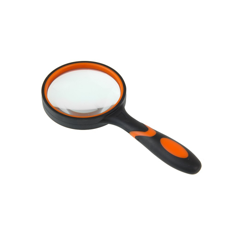 Корпус лупы изготовлен из пластика. Нарядные ручка и оправа обрезинены (покрытие софт-тач). Ручка имеет удобную форму и не выскользнет из руки во время работы. Длина ручки 103 мм. Линза изготовлена из оптического стекла — она не поцарапается при небрежном обращении и позволяет получать яркое изображение без искажений по краям поля зрения.