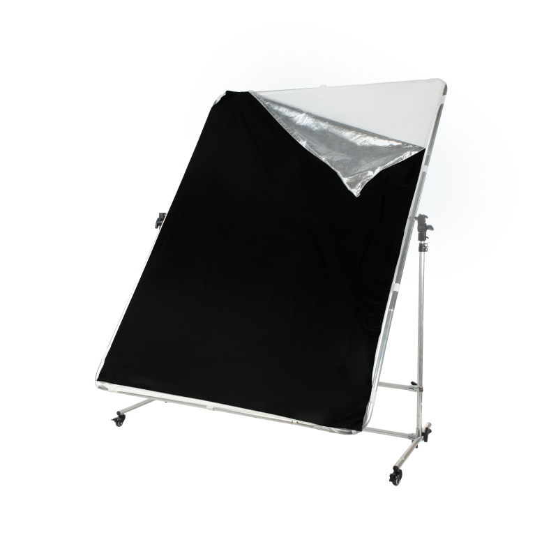Двустороннее полотно отражателя используется для блокировки и перенаправления света. Черная сторона служит для создания глубоких направленных теней, серебристое – более яркого и контрастного освещения.