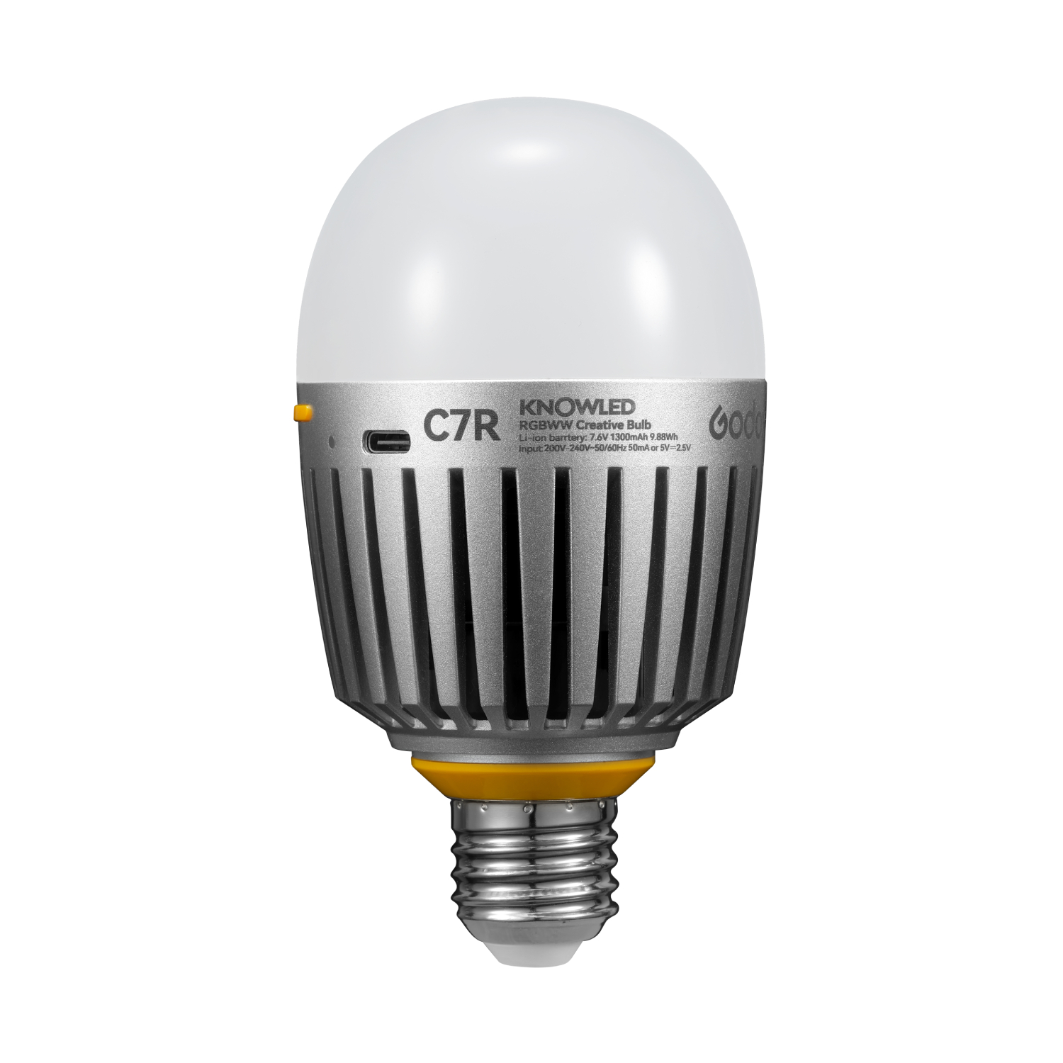 Godox Knowled C7R– уникальная светодиодная лампа-осветитель с цоколем E27 со стандартным форм-фактором лампы накаливания. Может заменять привычные источники освещения со значительными преимуществами: лампа C7R имеет более высокую мощность (до 10 Вт), регулировку режимов белого и цветного освещения, встроенный аккумулятор и возможность управления со смартфона.