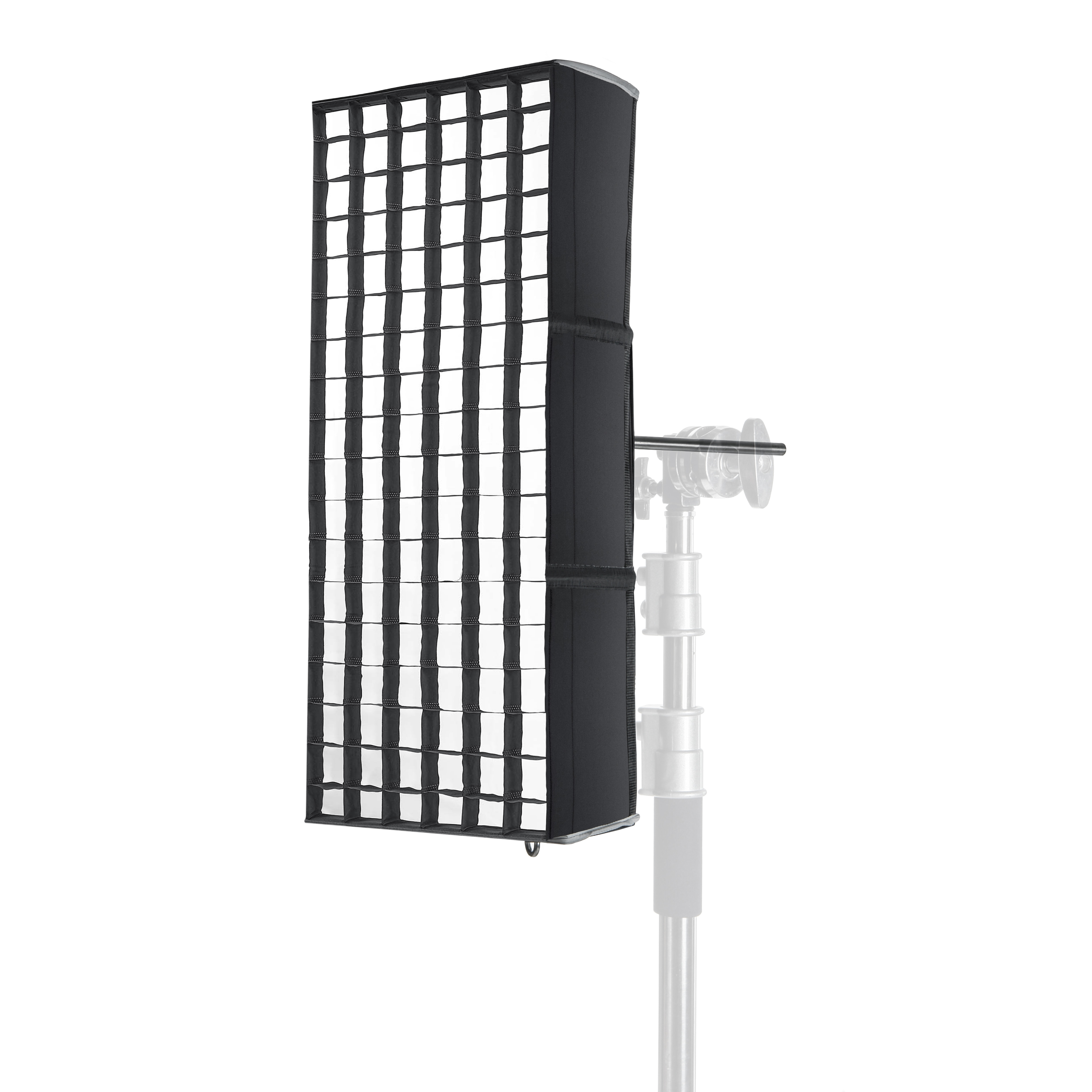 Внутренняя серебристая фактурная поверхность обеспечивает равномерное распределение света внутри софтбокса. Белый полупрозрачный рассеиватель делает свет более мягким и равномерным. Сотовая насадка уменьшает диаметр светового пятна для получения более контрастных кадров.