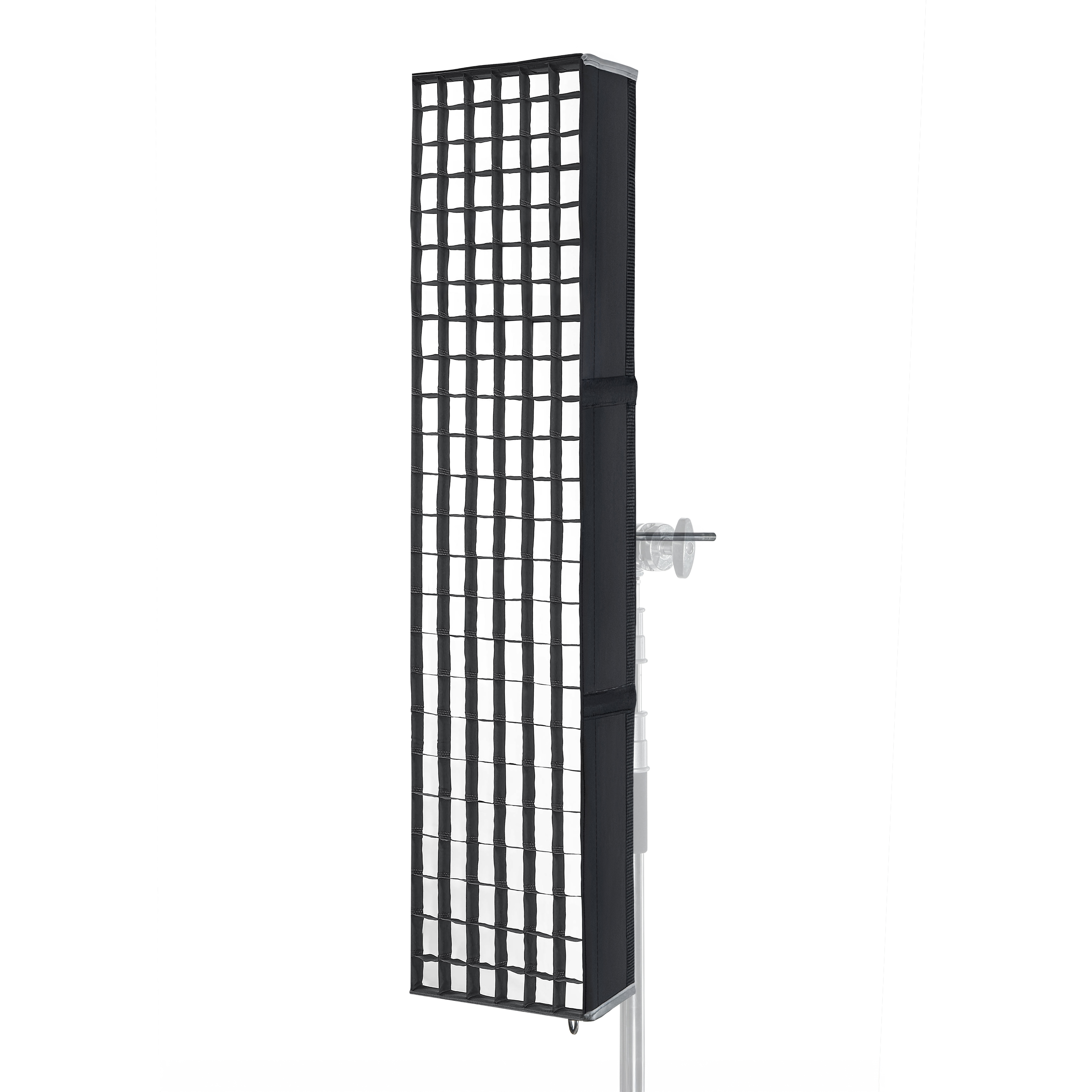Внутренняя серебристая фактурная поверхность обеспечивает равномерное распределение света внутри софтбокса. Белый полупрозрачный рассеиватель делает свет более мягким и равномерным. Сотовая насадка уменьшает диаметр светового пятна для получения более контрастных кадров.