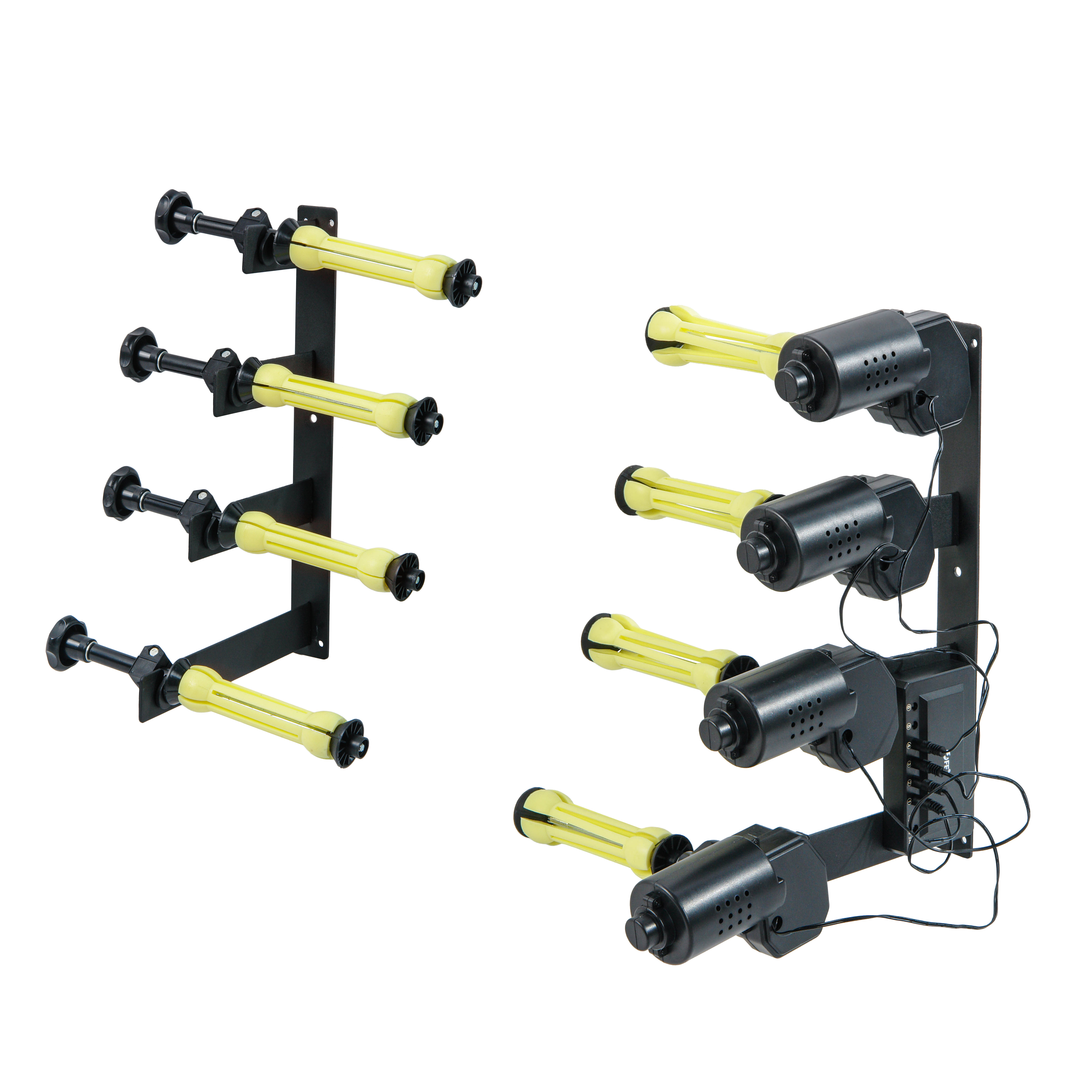 Falcon Eyes B-4MR– моторизованный подъемник для дистанционного управления четырьмя рулонными фонами с помощью беспроводного пульта ДУ. Система подъема фона предназначена для применения в профессиональной или домашней фото- видеостудии.