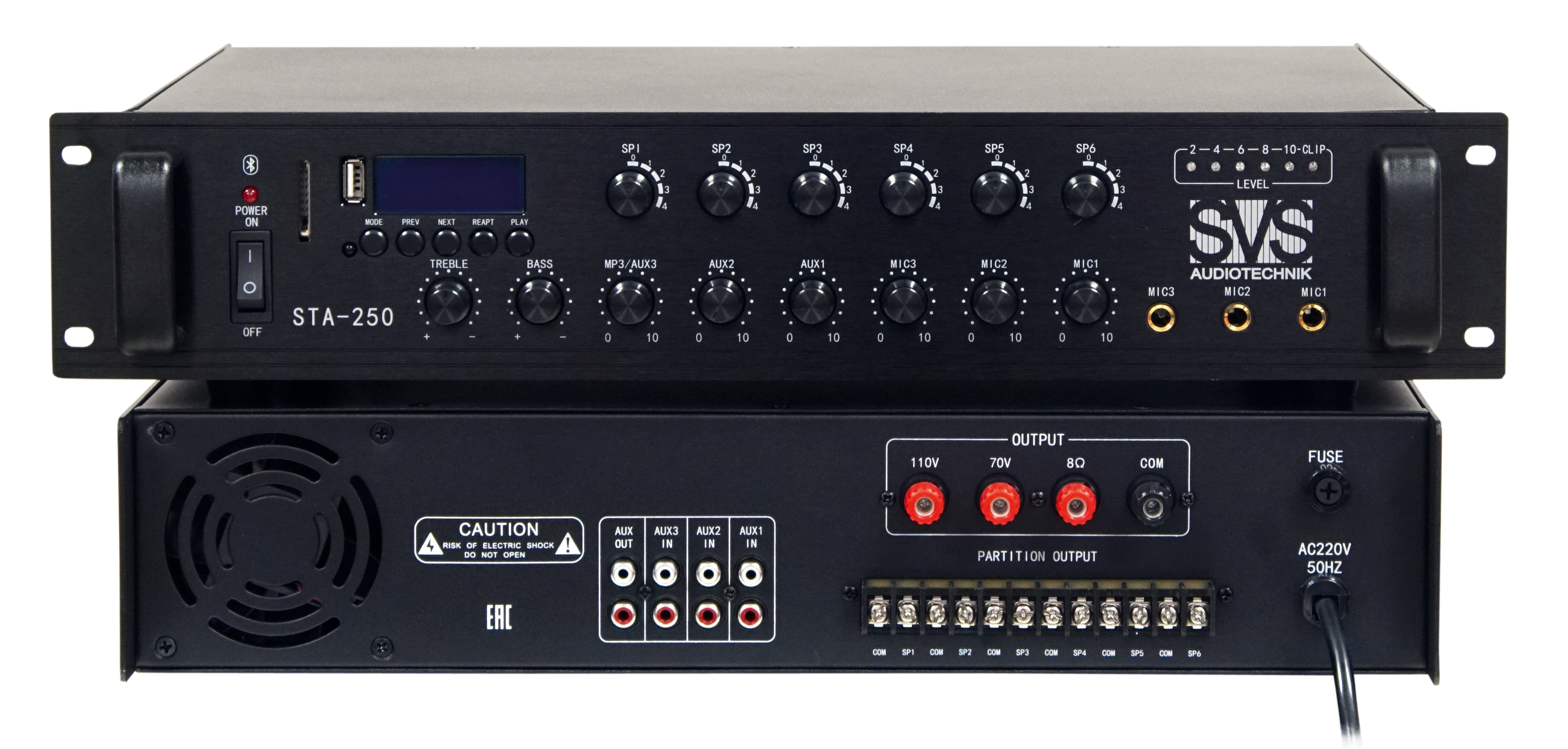 Микшер-усилитель для систем Public Address со встроенным MP3 плеером, FM тюнером и Bluetooth модулем