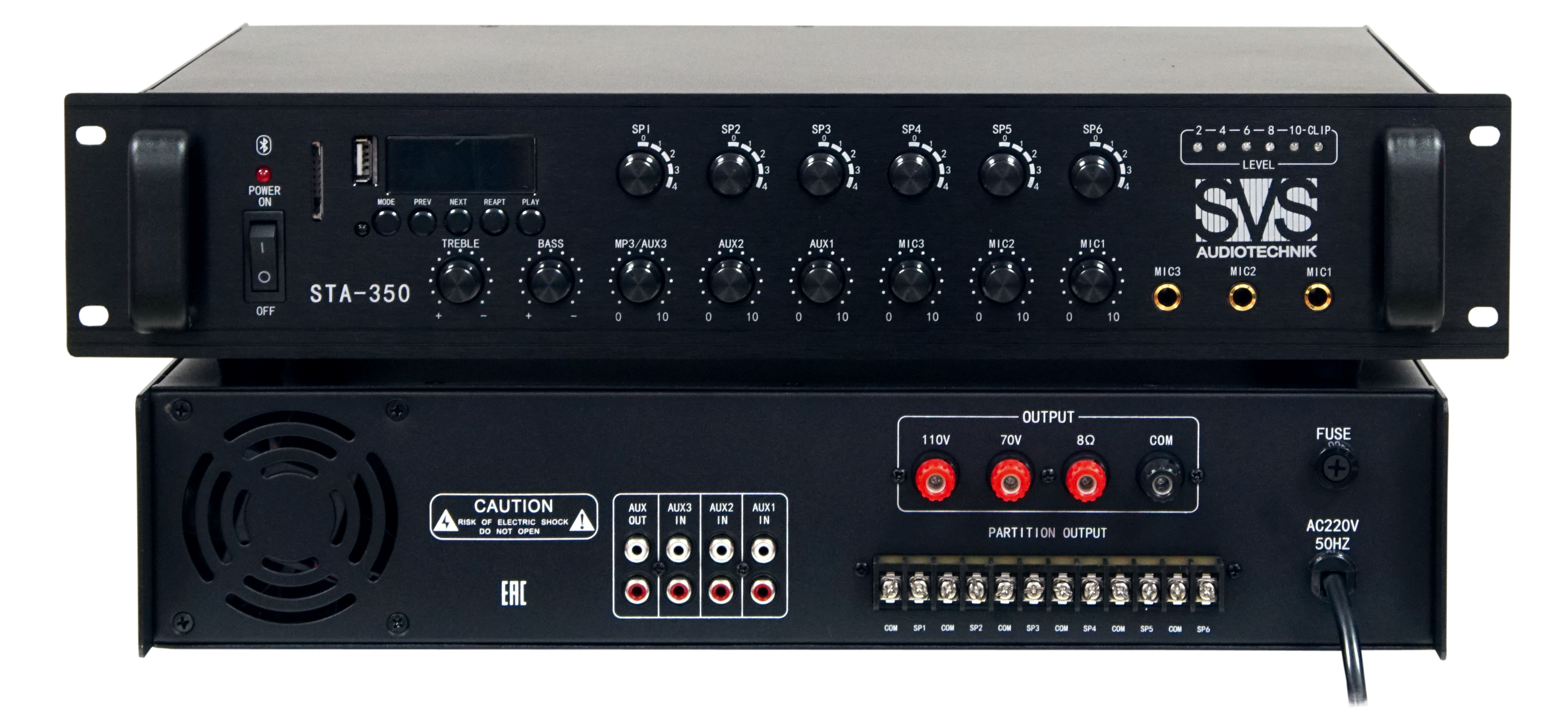 Микшер-усилитель для систем Public Address со встроенным MP3 плеером, FM тюнером и Bluetooth модулем