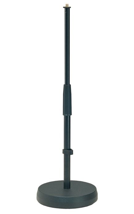 Прямая микрофонная стойка двухсекционная, телескопическая, может использоваться как настольная.