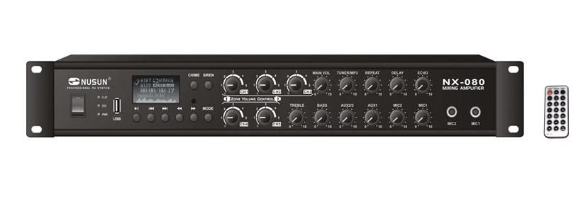 Трансляционный 5-ти зонный микшер-усилитель мощностью 80 Вт. FM -тюнер. LCD-дисплей. Дистанц.управление . USB-интерфейс с поддержкой MP-3, WMA файлов. 2 микр. ( 1,4" Jack ) и 2 лин. входа( RCA ) 1лин. выход(RCA) Индивидуальное подключение зон с регулировкой уровня громкости ( с индикацией ).