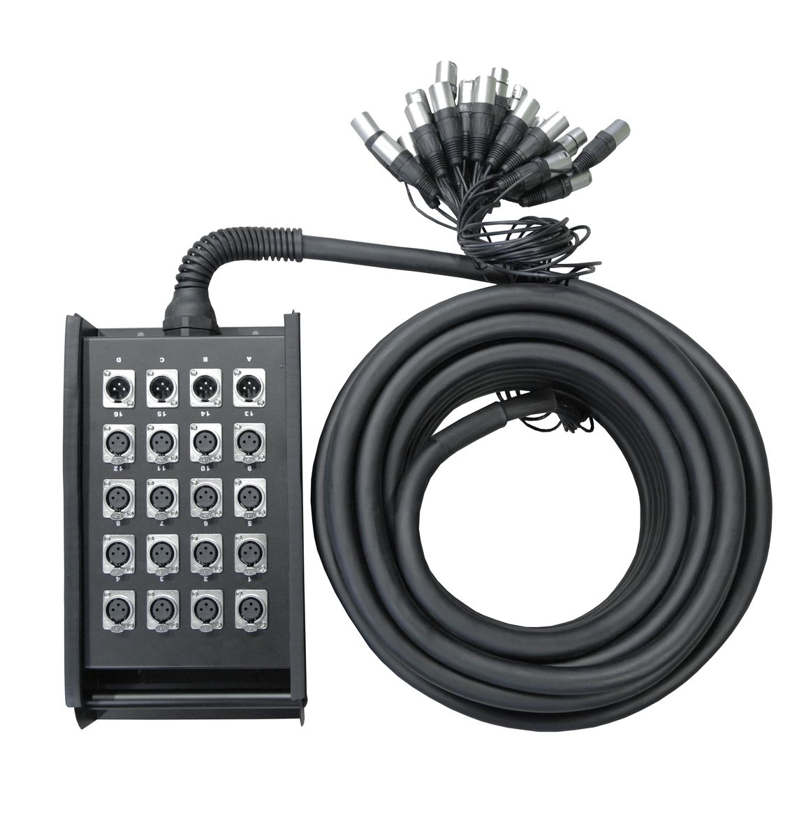 Сценическая коробка : Входы 1-16 XLR female, Выходы A-D XLR male