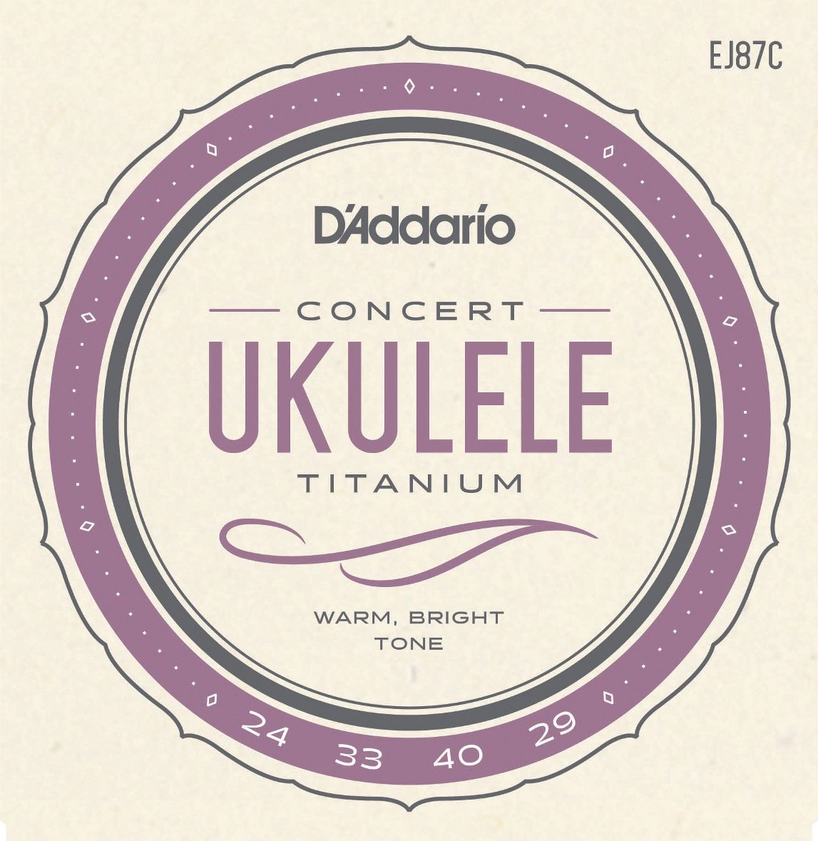 Струны для укулеле D'Addario Titanium изготавливаются из плотного материала из мононити, который имеет привлекательный, полупрозрачный фиолетовый оттенок и создает ощущение полированных гладких струн, похожих на нейлон. Этот уникальный материал особенно подходит для укулеле из-за его немного более яркого тона и усиленного сустейна, что приводит к большему объему, ясности и динамике.