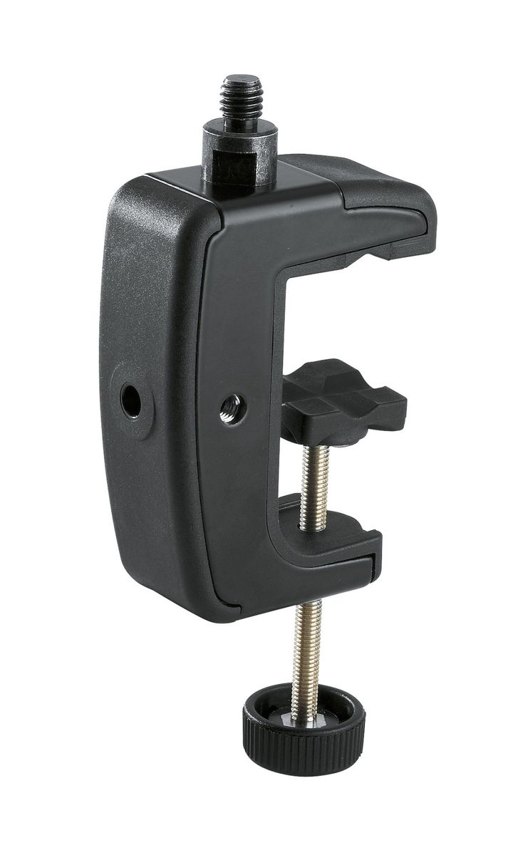 Струбцина с резьбовым разъёмом для подсоединения различных держателей. Разъём может быть установлен на четырёх разных сторонах струбцины. Благодяря зажиму с оригинальной формой, струбцина может устанавливаться как на плоские поверхности, так и на стойки.Максимальная толщина поверхности для установки: 48 ммРезьбовой разъём: 3/8"Материал: стальВес: 200 г
