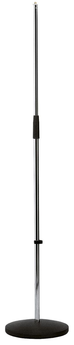 Прямая микрофонная стойка с круглым основанием, двухсекционная. Регулировка по высоте от 870 до 1 565 mmРезьбовой разъем: 3/8"Чугунное круглое основание, диаметр 250 mmРезиновая антивибрационная вставкаМатериал: стальЦвет: хромВес: 5,8 кг