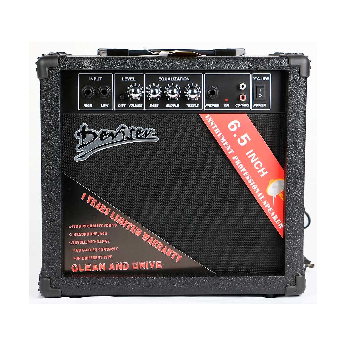Недорогой, компактный гитарный комбо для начинающих. Мощность 15 Вт Динамик 6.5" Два канала (чистый, дисторшн) Трехполосный эквалайзер Входы с высокой и низкой чувствительностью Вход AUX Выход на наушники