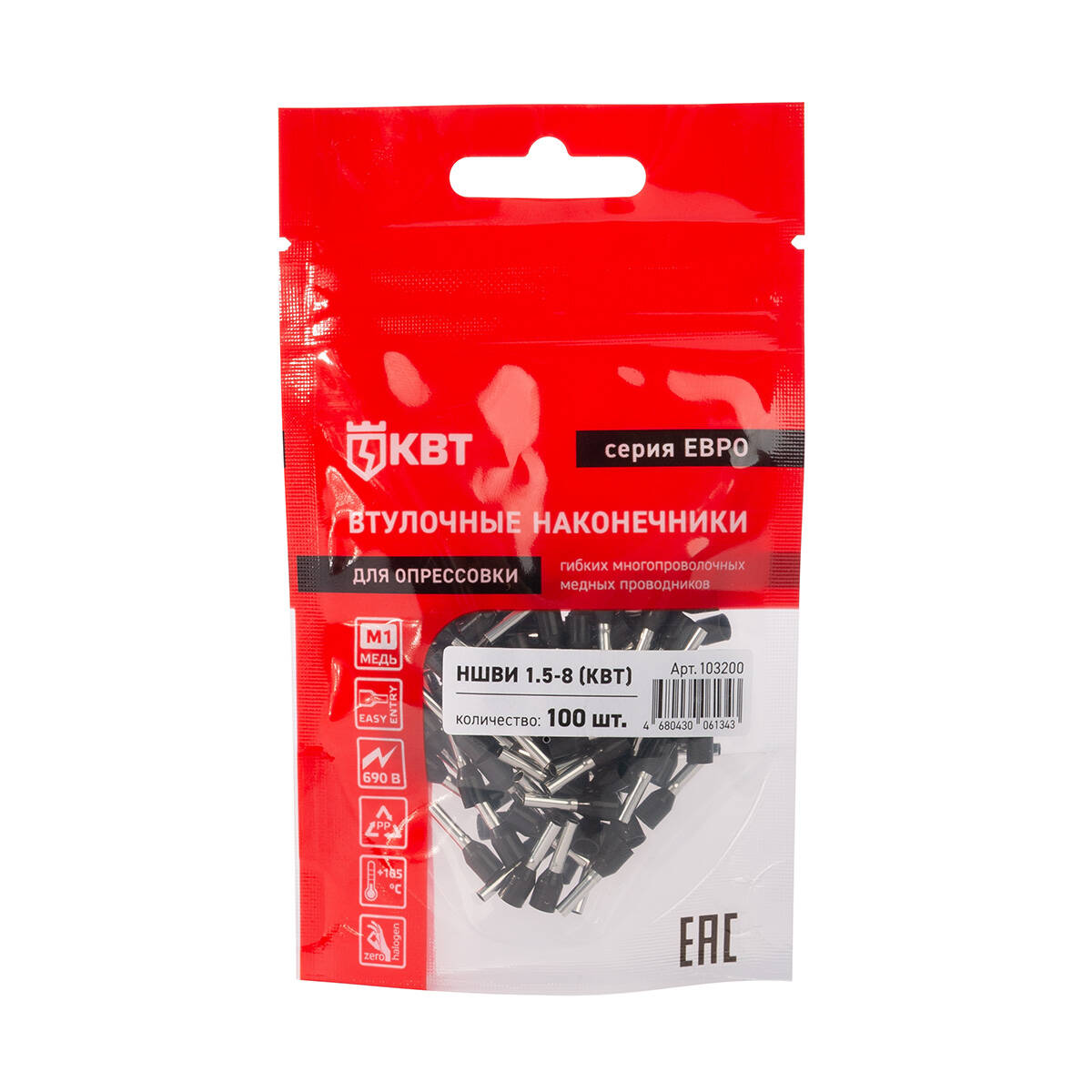 Оконцевание методом опрессовки гибких многопроволочных медных проводников сечением 1.5 мм². Трансформирует концы многожильных проводов в монолитные штифты. Монтаж одного провода