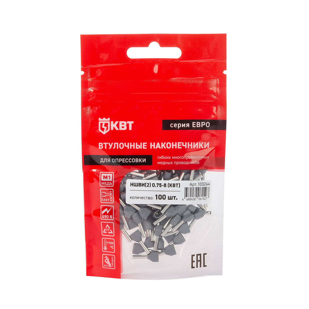 Оконцевание методом опрессовки гибких многопроволочных медных проводников сечением 2x0.75мм². Трансформирует концы многожильных проводов в монолитные штифты. Монтаж сдвоенных проводов одинакового сечения