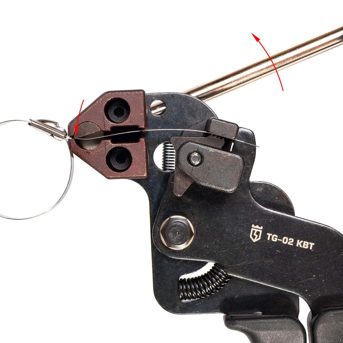 Инструмент для стяжек толщиной 0,45 мм. Длина конца стяжки необходимая для захвата не менее 45 мм. Максимальное усилие затяжки 1250 Н.