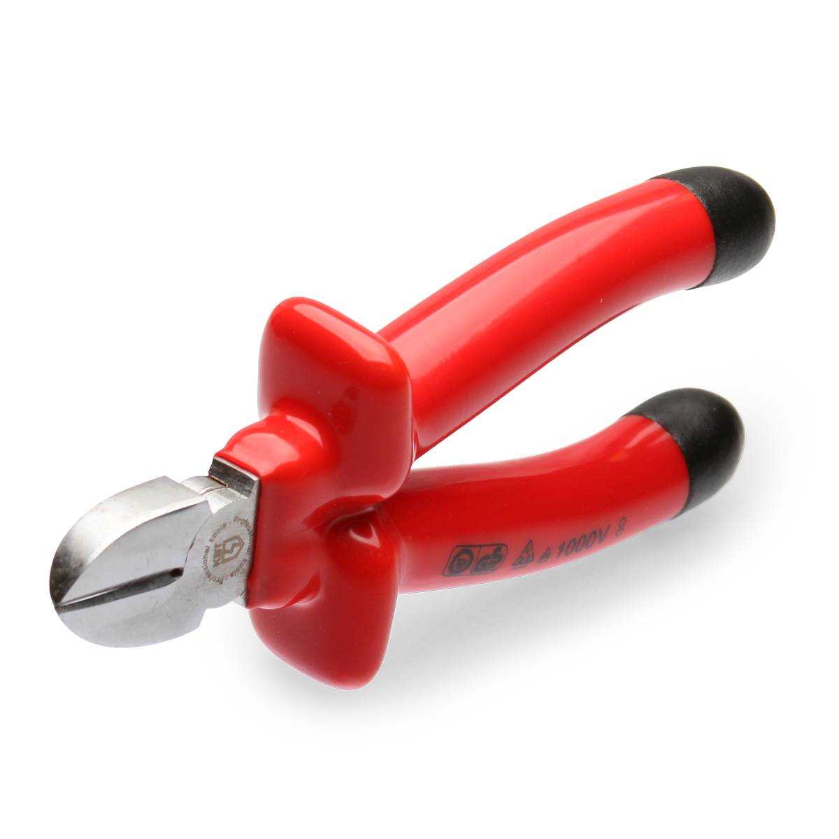 Особенности конструкции: Для работы под напряжением до 1000 В, Дополнительно закаленные режущие кромки, Для работ в труднодоступных местах, Изогнутые губки, Усиленный лепестковый шарнир