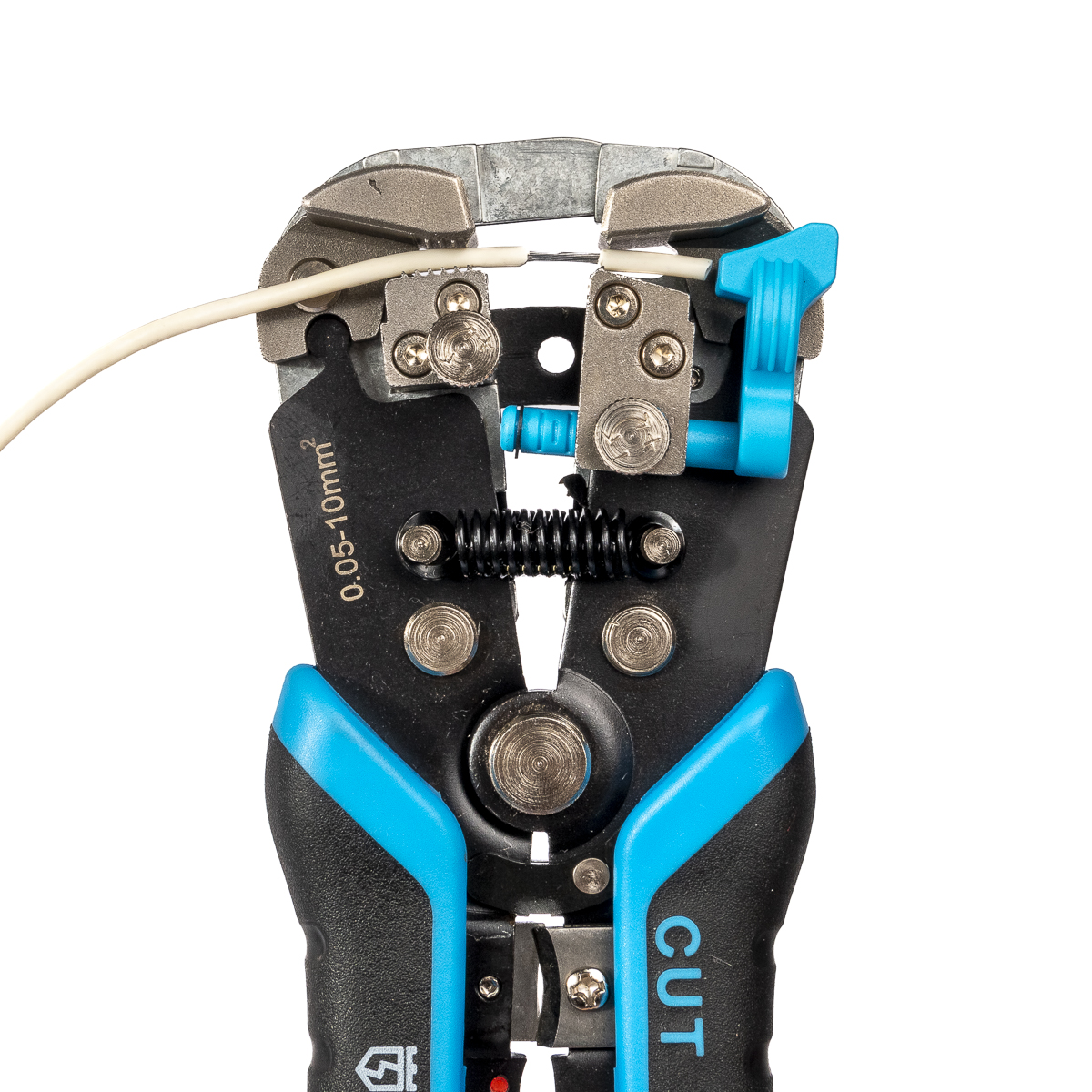 Особенности конструкции: возвратная пружина, ограничитель длины снятия изоляции, винт микронастройки, усиленные прижимные губки, возможность частичного снятия изоляции, окно для сброса обрезков изоляции, автоматическая настройка на размер провода