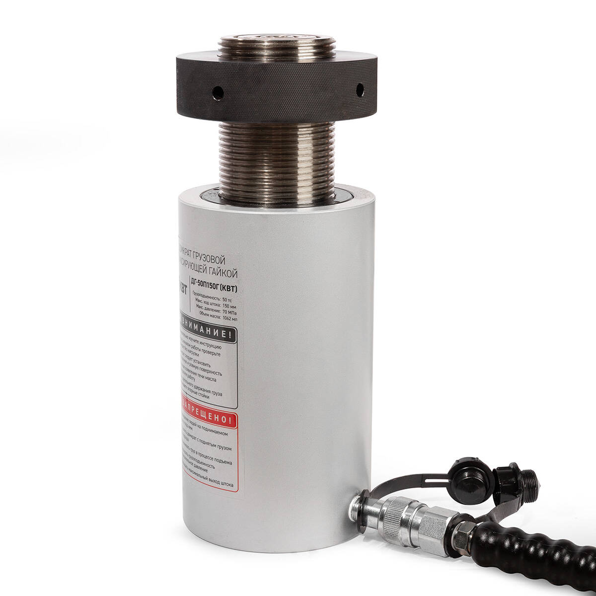 максимальное давление: 700 бар (70 Мпа), опора из закаленной стали, пружинный возврат штока, рифленая поверхность опоры, одностороннего действия, с фиксирующей гайкой