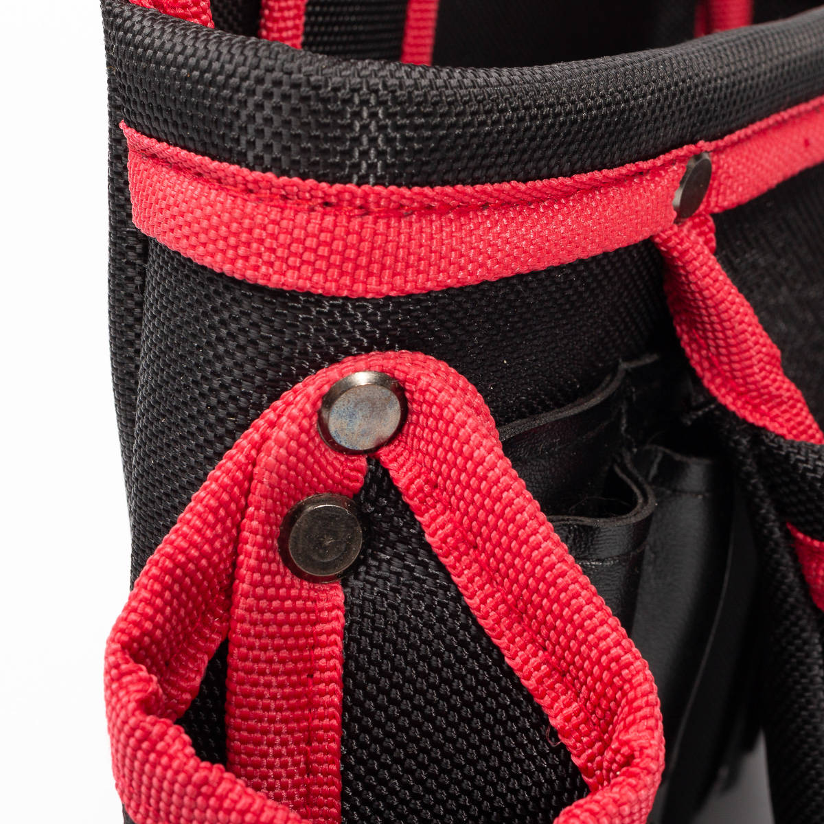 Особенности конструкции: металлические кольца для крепления помочей, металлический держатель, металлические заклепки, металлический держатель для рулетки, толстые стенки