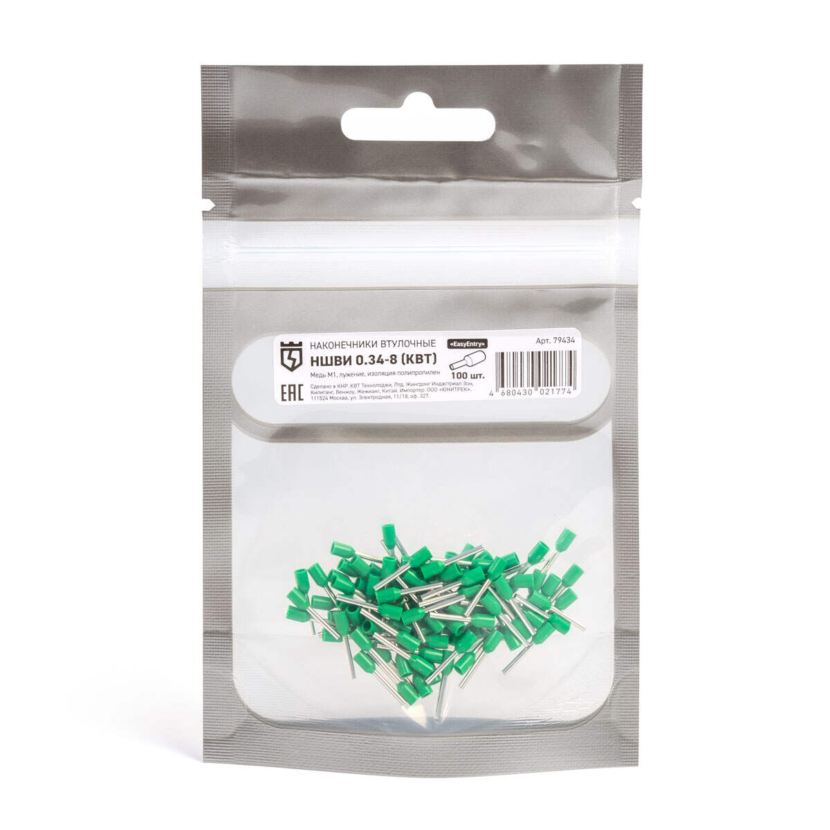 Оконцевание методом опрессовки гибких многопроволочных медных проводников сечением 0.34 мм². Трансформирует концы многожильных проводов в монолитные штифты. Монтаж одного провода