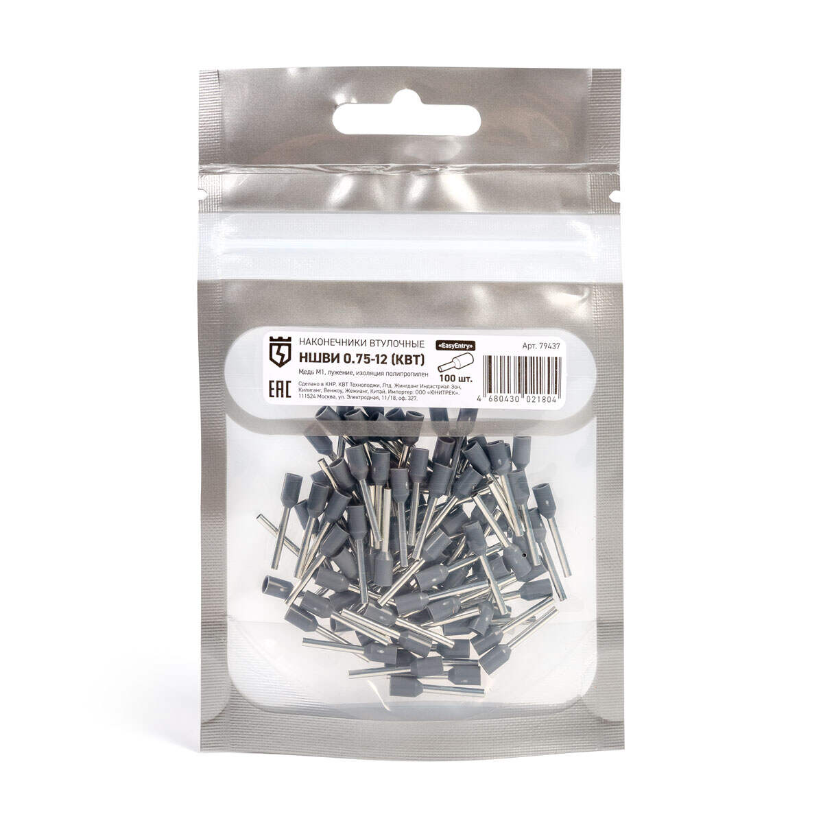 Оконцевание методом опрессовки гибких многопроволочных медных проводников сечением 0.75 мм². Трансформирует концы многожильных проводов в монолитные штифты. Монтаж одного провода