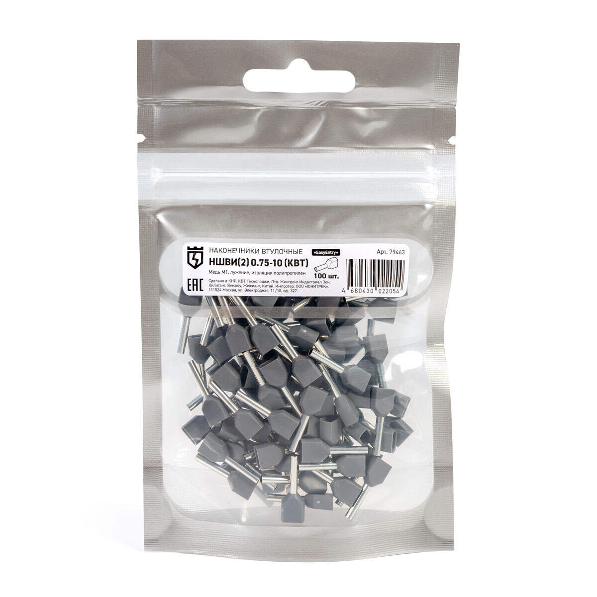 Оконцевание методом опрессовки гибких многопроволочных медных проводников сечением 2х0.75мм². Трансформирует концы многожильных проводов в монолитные штифты. Монтаж сдвоенных проводов одинакового сечения