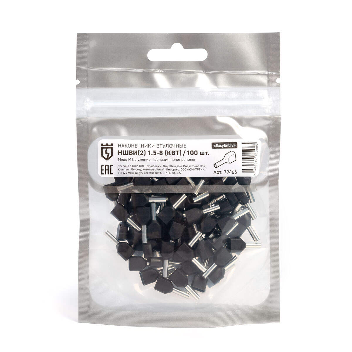 Оконцевание методом опрессовки гибких многопроволочных медных проводников сечением 2х1.5мм². Трансформирует концы многожильных проводов в монолитные штифты. Монтаж сдвоенных проводов одинакового сечения