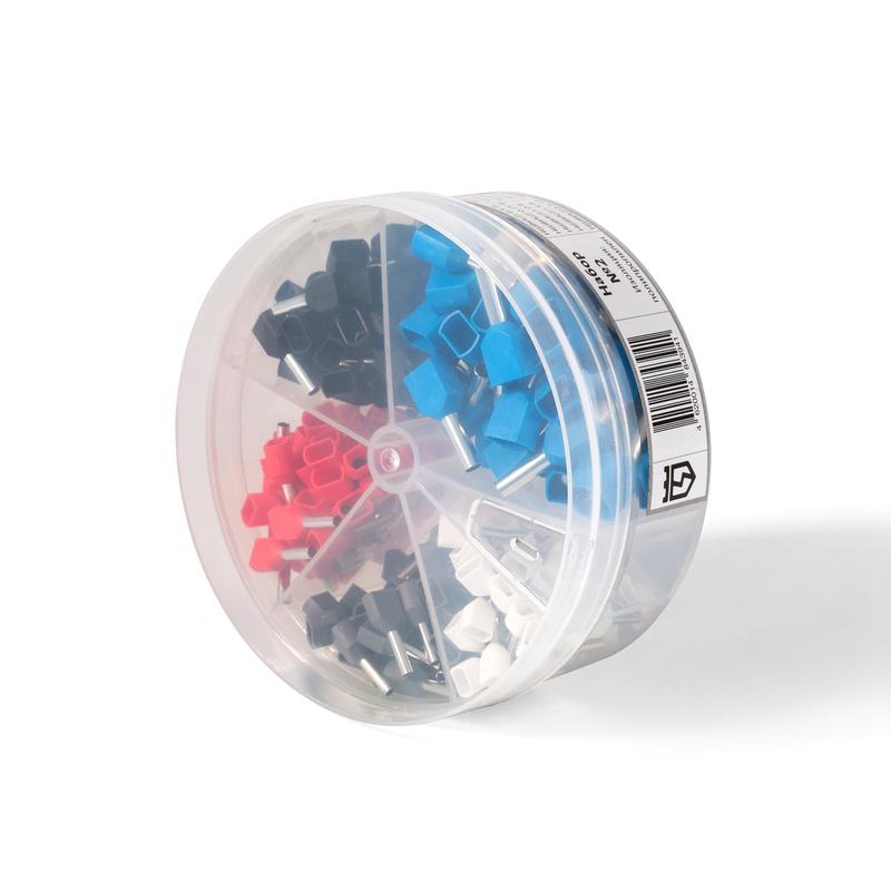 Оконцевание методом опрессовки гибких многопроволочных медных проводников сечениями от 2 × 0.5 до 2 × 2.5 мм² , трансформация концов многожильных проводов в монолитные штифты