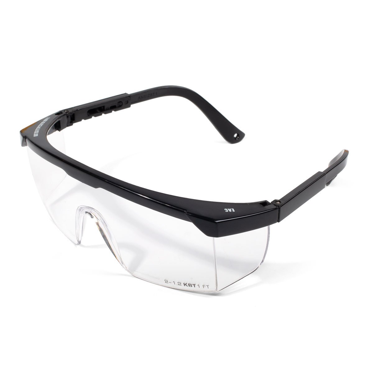 Очки с регулируемыми заушниками для защиты глаз от высокоскоростных частиц (низкоэнергетический удар на более 0,84 Дж), дополительная боковая защита и увеличенная защита сверху. Материал защитного стекла: бесцветный поликарбонат, устойчивый к экстремальным температурам от -5˚С до +55˚С.