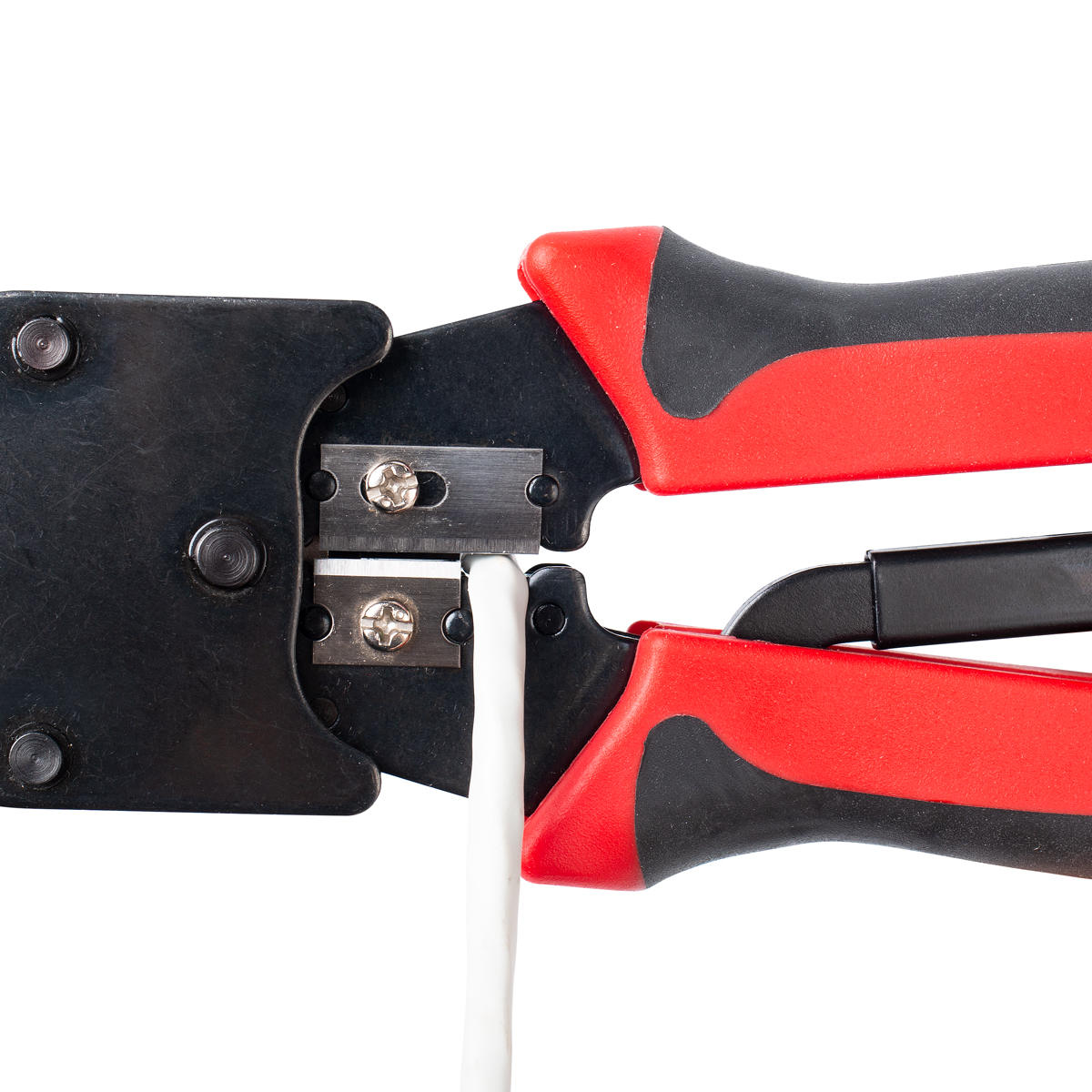 обжим разъемов RJ/снятие изоляции с плоских телефонных проводов/снятие оболочки с круглых проводов типа UTP, STP/резка проводов