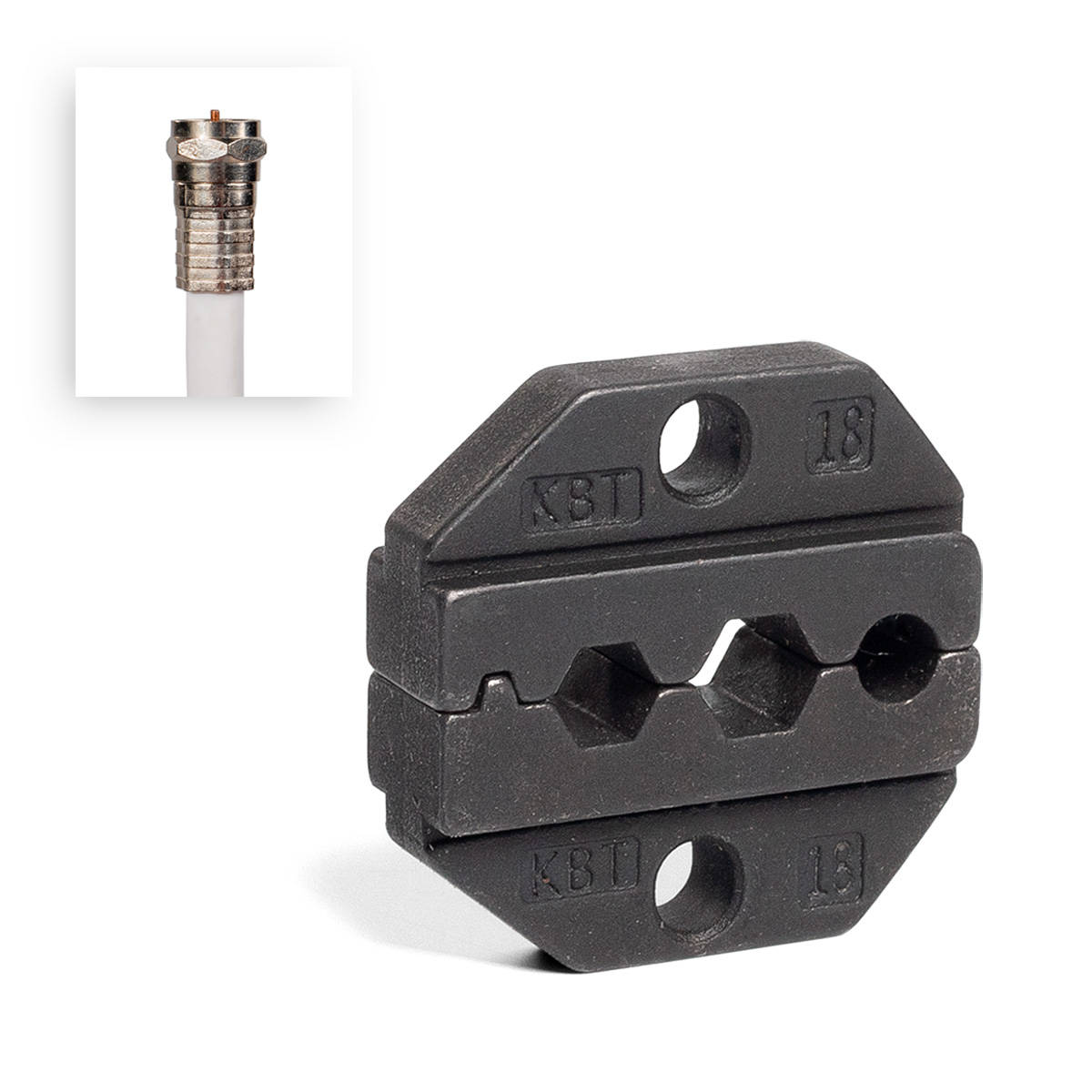 Краткая характеристика: Опрессовка коаксиальных разъемов для телевизионных кабелей RG 6, RG 58, RG 59, RG 62 с размером обжимного профиля: 6.48 ,1.73,5.41 мм; .256, .068, .213 дюйма