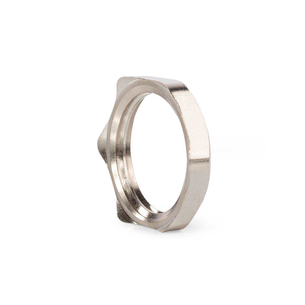 Наличие острых выступов на внутренней стороне гайки обеспечивает надежный контакт с заземленным корпусом. Совместима с фитингами и вводами, имеющими соответствующую метрическую резьбу.