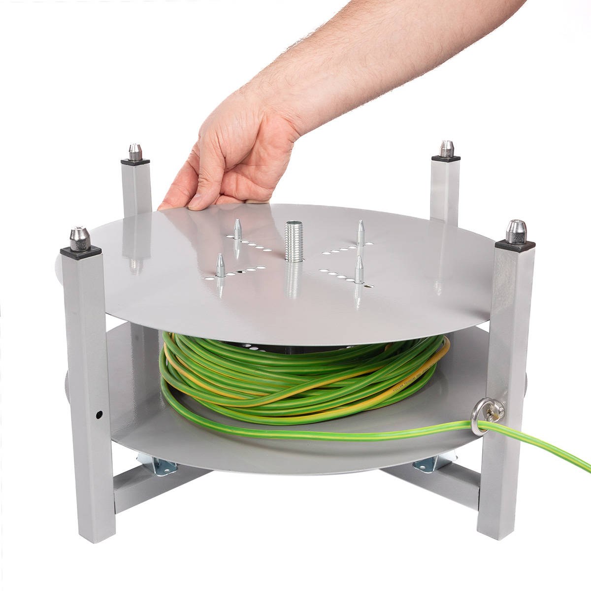 - Регулировочные стержни для фиксации бухты на диске в зависимости от внутреннего диаметра;
