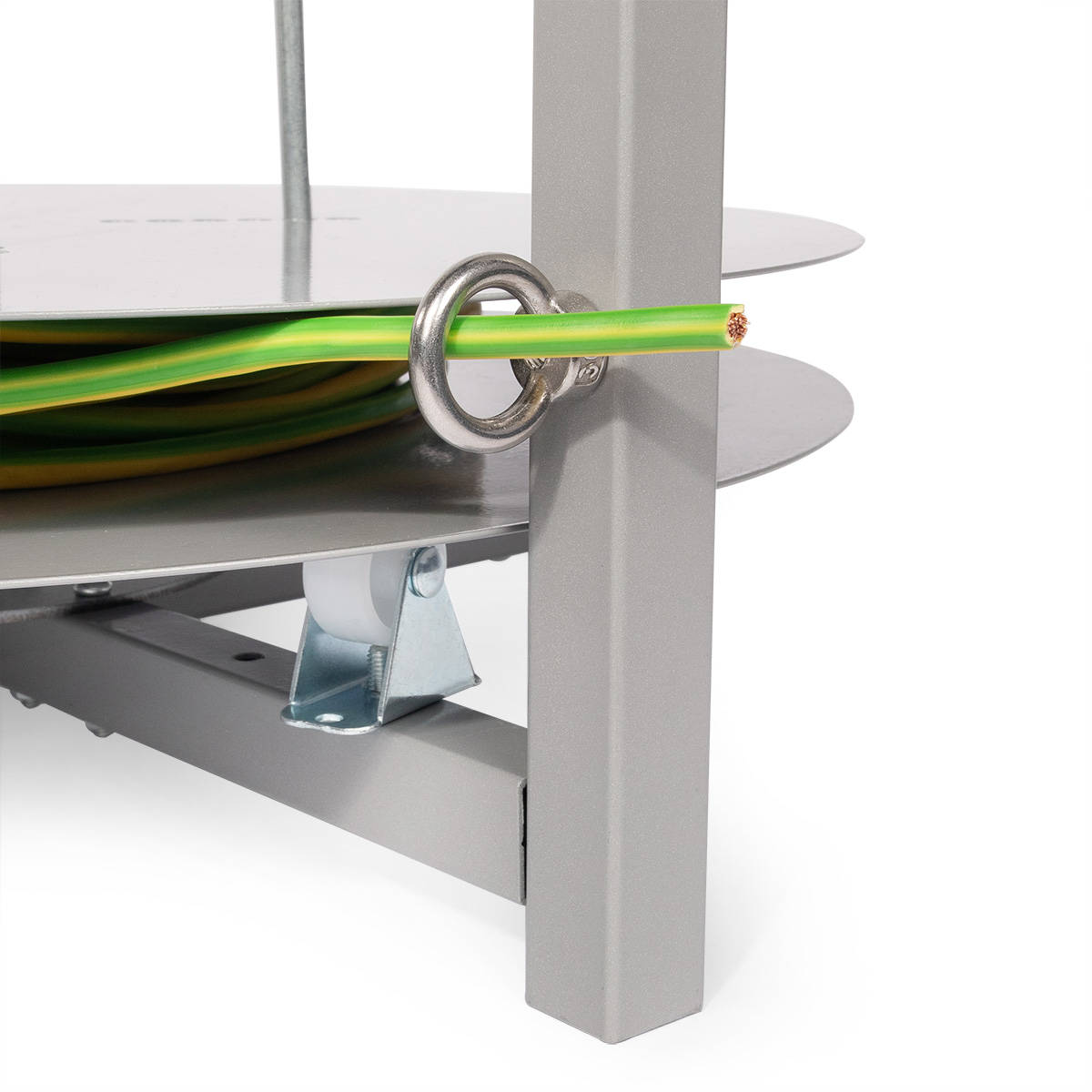 - Рым-болт с кольцом для подачи провода при размотке;