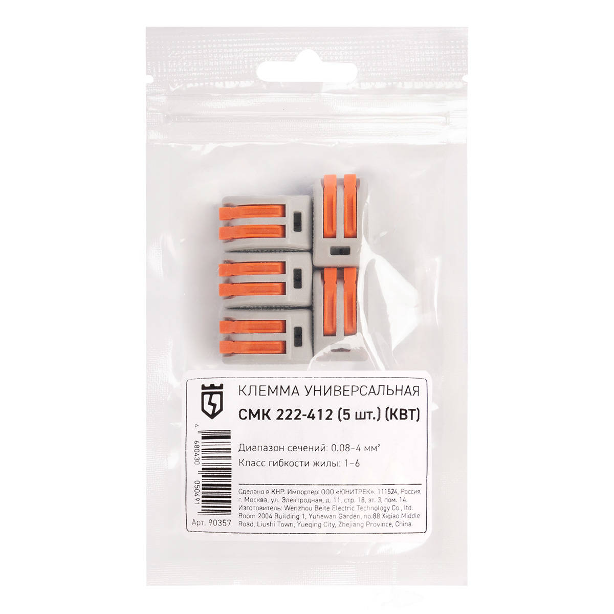 Подключение одножильных/ многожильных медных проводников сечениями от 0.08 до 4 мм² с 2 подключениями