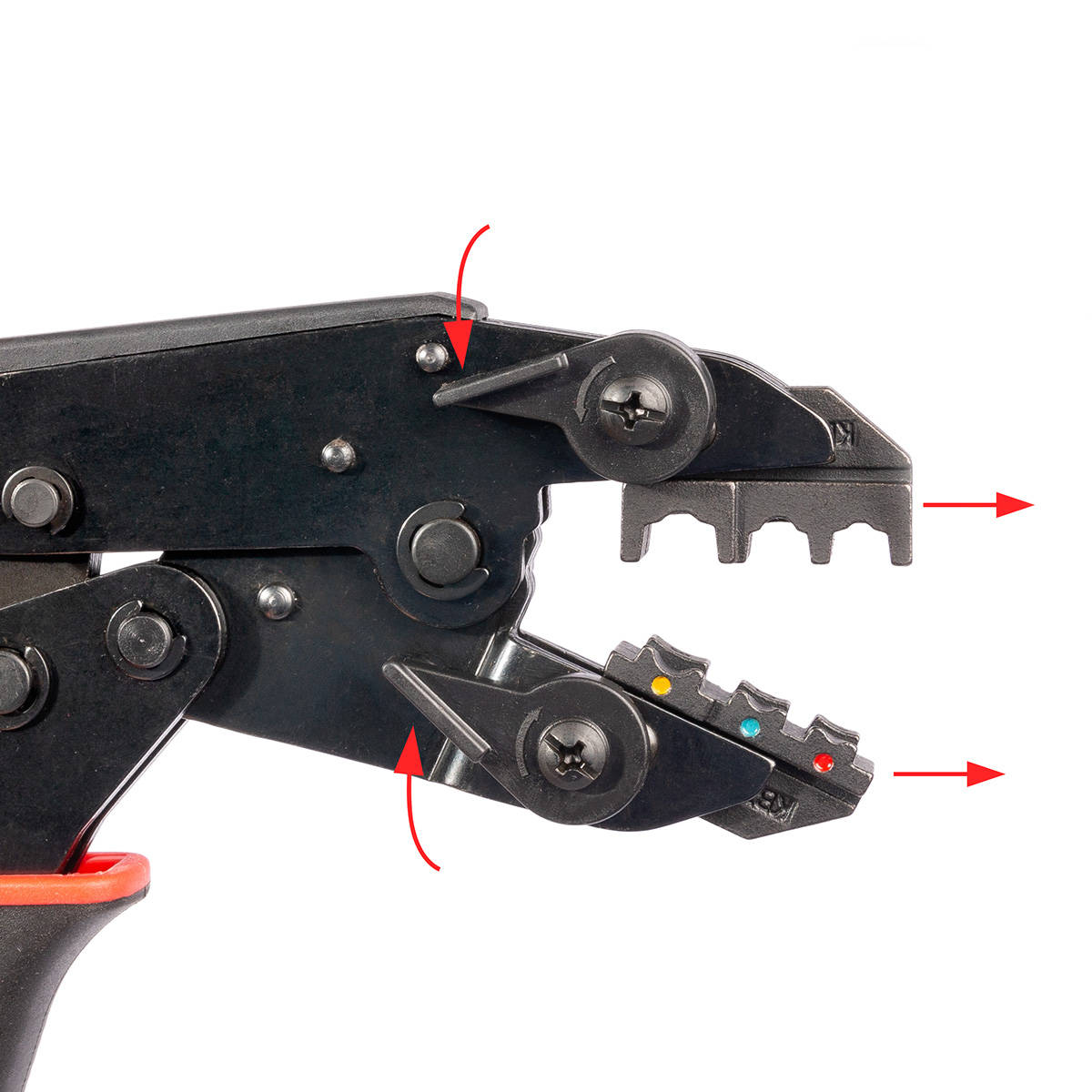 Особенности конструкции: быстросменные матрицы, регулятор прижимного усилия, храповой механизм, возможность использования матриц МПК, механизм разблокировки