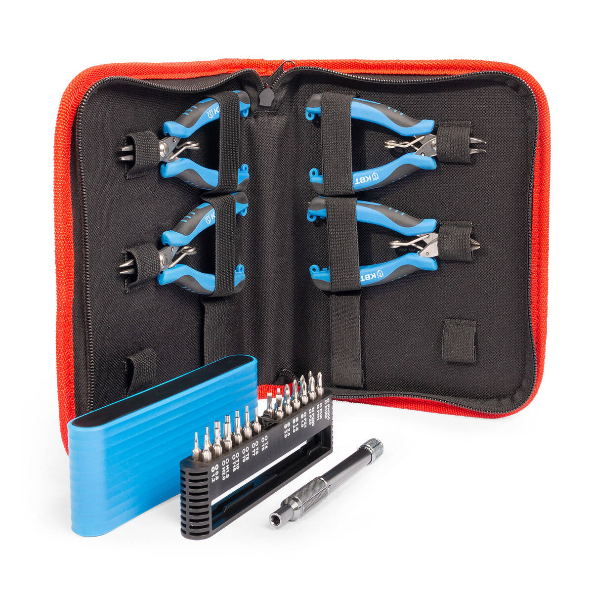 Особенности конструкции: Удержание круглых деталей, Для работ в труднодоступных местах, Удлиненные губки, Встроенная возвратная пружина, Изогнутые губки, Отвертки в комплекте