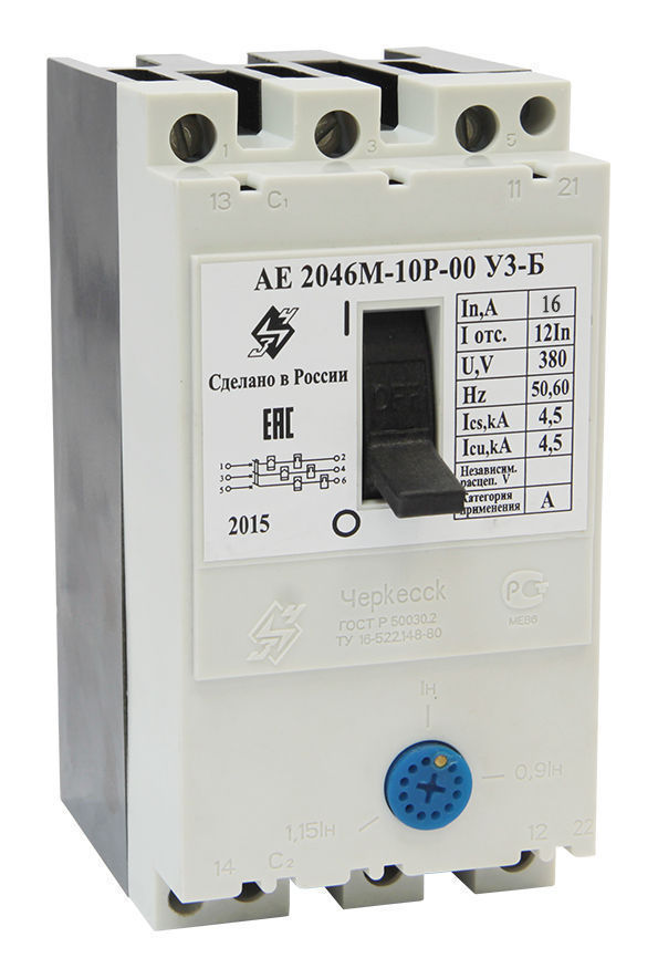 Автоматические выключатели АЕ 2046 предназначены для защиты электрических цепей и потребителей электрической энергии от токов короткого замыкания и токов перегрузки, проведения тока в нормальном режиме, а также для нечастых (до 30 раз в сутки) оперативных включений и отключений электрических цепей и рассчитаны для эксплуатации в электроустановках бытового и промышленного назначения с напряжением до 400В переменного тока частоты 50Гц.