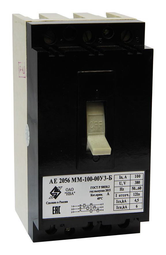 Автоматические выключатели AE 2056 используются в электрических цепях переменного тока до 100 А, частотой 50 Гц, напряжением до 400 В. Выключатели осуществляют защиту электрооборудования от перегрузок и коротких замыканий, а также нечастые (до 30 раз в сутки) коммутации электропотребителей.