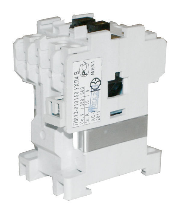 Пускатели электромагнитные серии ПМ12 предназначены для применения главным образом в стационарных установках для дистанционного пуска непосредственным подключением к сети, остановки и реверсирования трехфазных асинхронных электродвигателей с короткозамкнутым ротором при напряжении до 660 В переменного тока частоты 50 и 60 Гц. Для ограничения коммутационных перенапряжений, возникающих при отключении катушек управления, на пускатели серий ПМ12 могут устанавливаться ограничители перенапряжений ОПН. Пускатели, комплектуемые ограничителями перенапряжений, пригодны для работы в системах управления с применением микропроцессорной техники. Для защиты трехфазных асинхронных двигателей с короткозамкнутым ротором от перегрузок недопустимой продолжительности и от токов, возникающих при обрыве одной из фаз, предназначены трехполюсные электротепловые токовые реле серии РТТ. Структура условного обозначения электромагнитных пускателей ПМ12: ПМ12 - Х Х Х Х Х Х Х Х 1. Обозначение серии: 2. Цифры, указывающие условное обозначение номинального тока: 010 —10 А 025 —25 А 040 —40 А 063 —63 А 100 —100 А 160 —160 А 250 —250 А 3. Цифра, указывающая условное обозначение пускателей по назначению и наличию теплового реле: 1 - нереверсивный пускатель без теплового реле 2 - нереверсивный пускатель с тепловым реле 5 - реверсивный пускатель без теплового реле, с мех. блокировкой и степенью защиты IP00 6 - реверсивный пускатель с тепловым реле, с электрической и механической блокировками 4. Цифра, указывающая исполнение пускателей по степени защиты и наличию кнопок управления: 0 - степень защиты IP00 1 - степень защиты IP54 без кнопок 2 - степень защиты IP54 с кнопками «Пуск» + «Стоп» 3 - степень защиты IP54 с кнопками «Пуск» + «Стоп» + сигнальная лампа 4 - степень защиты IP40 без кнопок 5 - степень защиты IP20 6 - степень защиты IP40 с кнопками «Пуск» + «Стоп» 7 - степень защиты IP40 «Пуск» + «Стоп» + сигнальная лампа 5. Цифра, указывающая исполнение пускателей по числу и исполнению контактов вспомогательной цепи: 0 - исполнение 1з для пускателей на номинальный ток: 10 А, 25 А, 40 А (2з+2р для пускателей на номинальный ток 100 А,125 А,160 А,180 А, 250 А) 1 - исполнение 1р для пускателей на номинальный ток: 10 А, 25 А, 40 А (4з+4р для пускателей на номинальный ток: 100 А,125 А,160 А,180 А,2 50А) 6. Буква, характеризующая климатическое исполнение по ГОСТ 15150: (У) - стандартное исполнение (Т) - тропическое 7. Цифра, характеризующая категорию размещения ГОСТ 15150 8. Буква, указывающая исполнение по износостойкости: А, Б, В Пускатели 100-250 А изготавливаются, как с металлическим основанием, так и с пластмассовым.
