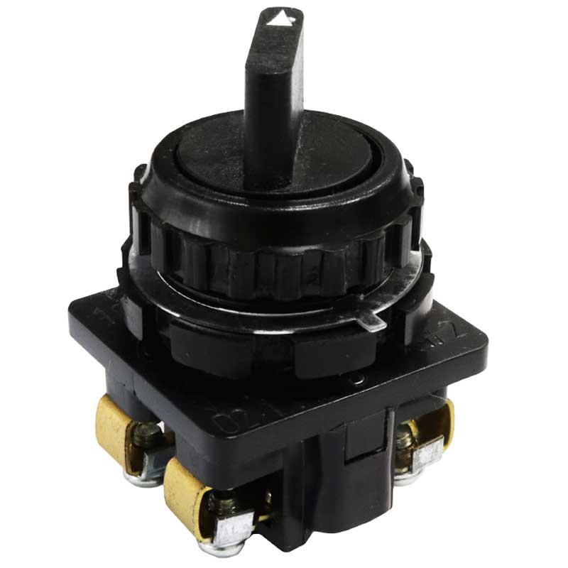 Переключатели поворотные ПЕ 021 используются для замыкания-размыкания электрических цепей в постах и пультах управления, на станках, кузнечно-прессовом оборудовании, на конвейерах, в железнодорожных вагонах и локомотивах, трамвайных вагонах и вагонах метро, для управления кран-балками, тельферами и лебедками. В том числе в химостойких изделиях. Для использования в метро и на транспорте могут комплектоваться металлическими зажимными кольцами и контактами из чистого серебра. ПЕ021 изготавливаются в 2-х исполнениях в зависимость от количества замыкающих и размыкающих контактов. Замыкающие и размыкающие контакты с двойным разрывом цепи. ПриКантактные элементы имеют не связанные между собой перемещении траверсы — в результате переключения — происходит замыкание или размыкание контактов. Рукоятка на 2 положения. IP40. Рабочее напряжение при переменном токе 24-380В при постоянном токе 24-440В Частота включений в час – 1200. Износостойкость Механическая – 1*106 циклов. Допускается устанавливать в местах, защищённых от попадания пыли,брызг воды, эмульсии и масла